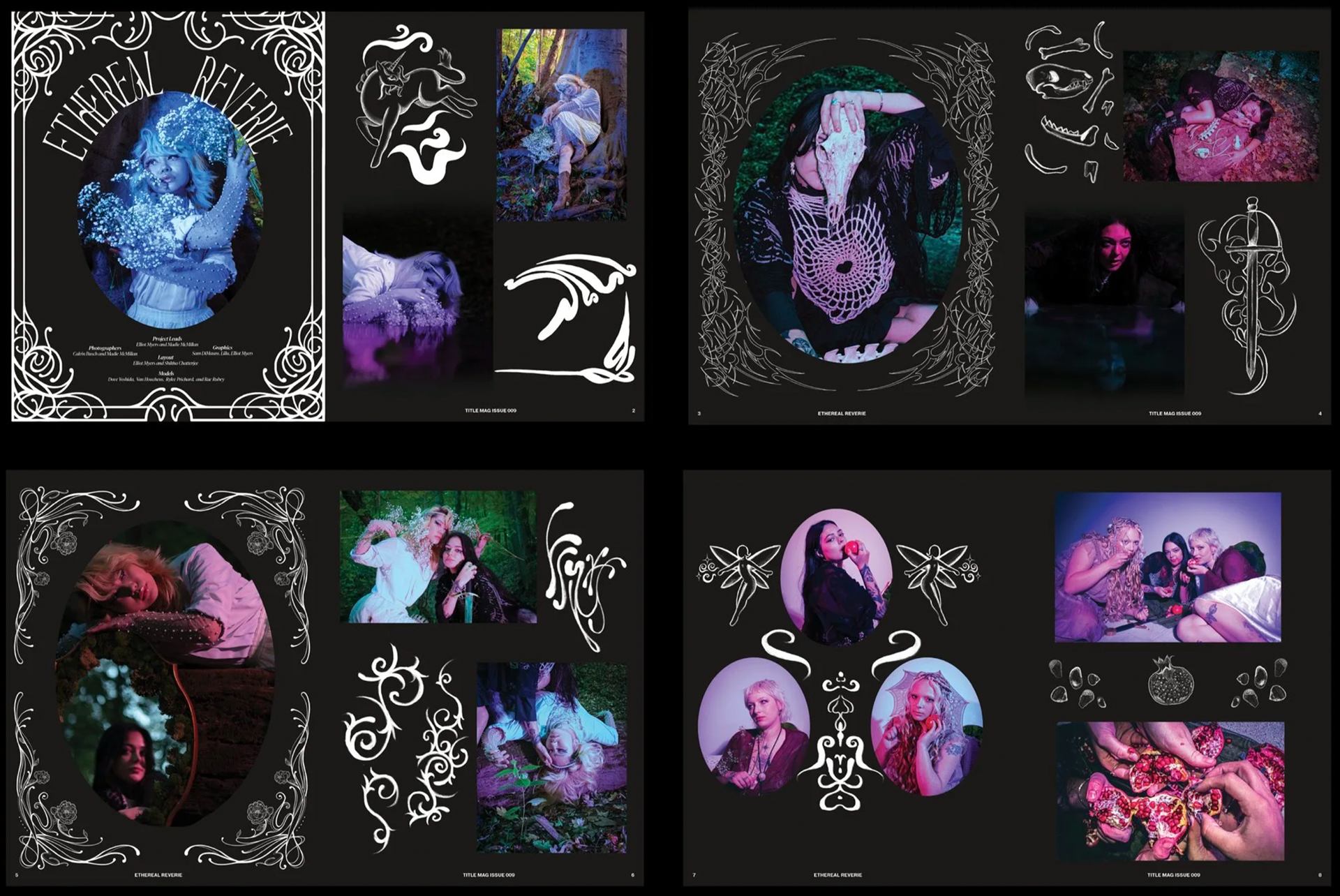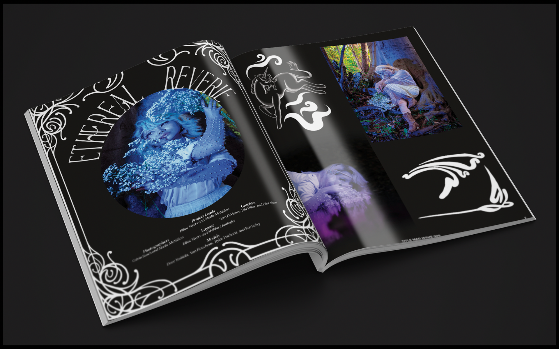 For Issue 009, I assisted Elliot Myers in developing his concept, Ethereal Reverie, and layout for Worlds Within Worlds.